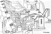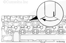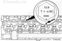 轉(zhuǎn)動螺栓直到在缸蓋上做的標記進入螺栓頭的“窗口”中。