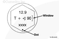 為了精確地使螺栓轉(zhuǎn)動到要求的角度,使螺栓與螺栓頭上標記的“小圓點”和“窗口”對正,或者使用扭矩角度計 - 3/4 英寸驅(qū)動頭(零件號 3823878)。
