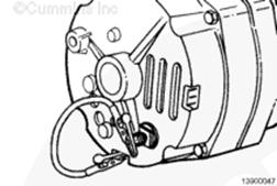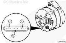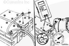 讓康明斯B3.3和QSB3.3發(fā)動機(jī)高怠速運轉(zhuǎn),用數(shù)字萬用表(零件號 3164488)或等效工具測量輸出到蓄電池上的充電機(jī)電壓。參考 OEM 維修手冊中的充電機(jī)輸出電壓。