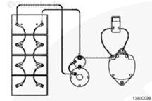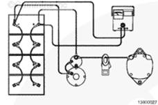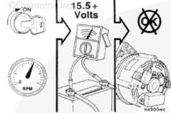 注: 充電機(jī)輸出電壓直接與正在運轉(zhuǎn)的充電機(jī)轉(zhuǎn)速有關(guān)。充電機(jī)傳動皮帶滑動可能會造成輸出讀數(shù)不正確。