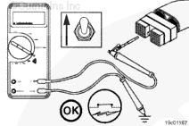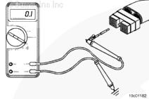 檢查觸針之間是否存在短路。按前述方法設(shè)置開關(guān)以隔離巡航控制開關(guān)電路。將巡航控制/PTO ON/OFF 開關(guān)置于 OFF 位置。將測試導線插入巡航控制 ON/OFF 開關(guān)輸入觸針。用鱷魚夾連接萬用表。將另一根測試導線插入開關(guān)回路導線,并測量電阻。