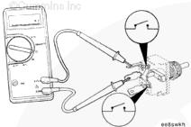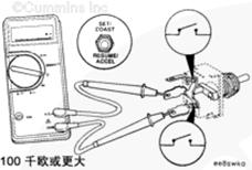 將萬用表的一支表筆接觸開關(guān)的中心端子。萬用表的另一支表筆接觸開關(guān)的 SET/COAST(設(shè)置/滑行)端子。