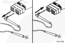 將測試導線插入 OEM 線束接頭的巡航控制/PTO 設(shè)置/滑行開關(guān)信號觸針,然后將鱷魚夾連接到萬用表表筆上。