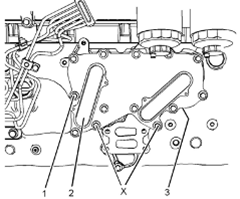 注意不同長度螺栓的位置。不要拆下(X)位置上的螺栓。