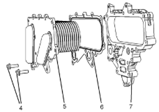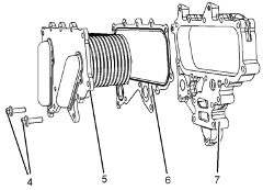 2將新接頭(6)安置在隔板(7)上。將冷卻器基體(5)安裝到隔板上。