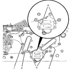 2將新密封墊(3)(未顯示)定位到Perkins1106A/C發(fā)動機(jī)機(jī)油冷卻器組件(2)上。將螺栓(1)安裝到密封墊的鋸齒形孔中。