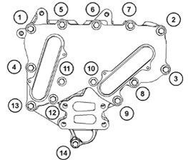 8按照圖84所示的順序,擰緊螺栓(1)至扭矩為22N·m(195lbin)。