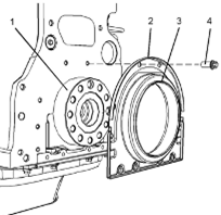 3提供的新Perkins1106A/C發(fā)動機曲軸后油封帶有一個塑料套管(3)。確保安裝時塑料套管的四個角在Perkins1106A/C發(fā)動機曲軸后油封(2)以內(nèi)。
