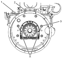 Perkins1106A/C發(fā)動(dòng)機(jī)機(jī)殼體-拆卸和安裝 (標(biāo)準(zhǔn)Perkins1106A/C發(fā)動(dòng)機(jī)機(jī)殼體) 拆卸步驟 開(kāi)始: a.拆下飛輪。有關(guān)正確的步驟,請(qǐng)參閱《Perkins1106A/C發(fā)動(dòng)機(jī)拆解和組裝》,“飛輪-拆卸”。 注意:保持所有零件清潔無(wú)雜質(zhì)。雜質(zhì)會(huì)造成快速磨損和縮短部件壽命。 1將螺栓(3)從Perkins1106A/C發(fā)動(dòng)機(jī)飛輪Perkins1106A/C發(fā)動(dòng)機(jī)機(jī)殼體(1)的位置(X)上拆下。 2將工具(A)安裝在Perkins1106A/C發(fā)動(dòng)機(jī)飛輪Perkins1106A/C發(fā)動(dòng)機(jī)機(jī)殼體(1)上的位置(X)。 3將適當(dāng)?shù)钠鸬踉O(shè)備安裝到Perkins1106A/C發(fā)動(dòng)機(jī)飛輪Perkins1106A/C發(fā)動(dòng)機(jī)機(jī)殼體上來(lái)支撐住Perkins1106A/C發(fā)動(dòng)機(jī)飛輪Perkins1106A/C發(fā)動(dòng)機(jī)機(jī)殼體。Perkins1106A/C發(fā)動(dòng)機(jī)飛輪Perkins1106A/C發(fā)動(dòng)機(jī)機(jī)殼體的重量約為40kg(88lb)。 4將螺栓(2)和其余螺栓(3)從Perkins1106A/C發(fā)動(dòng)機(jī)飛輪Perkins1106A/C發(fā)動(dòng)機(jī)機(jī)殼體(1)上拆下。 5使用適當(dāng)?shù)钠鸬踉O(shè)備,將Perkins1106A/C發(fā)動(dòng)機(jī)飛輪Perkins1106A/C發(fā)動(dòng)機(jī)機(jī)殼體(1)從Perkins1106A/C發(fā)動(dòng)機(jī)缸體上卸下。 6.拆下防塵密封件(5)。 7.如有必要,將定位銷(xiāo)(4)從Perkins1106A/C發(fā)動(dòng)機(jī)缸體上卸下。 安裝程序(標(biāo)準(zhǔn)Perkins1106A/C發(fā)動(dòng)機(jī)機(jī)殼體) 注意:保持所有零件清潔無(wú)雜質(zhì)。雜質(zhì)會(huì)造成快速磨損和縮短部件壽命。 1.確保Perkins1106A/C發(fā)動(dòng)機(jī)飛輪Perkins1106A/C發(fā)動(dòng)機(jī)機(jī)殼體清潔且無(wú)損壞。如有必要,更換Perkins1106A/C發(fā)動(dòng)機(jī)飛輪Perkins1106A/C發(fā)動(dòng)機(jī)機(jī)殼體。 2檢查Perkins1106A/C發(fā)動(dòng)機(jī)曲軸后油封(6)有無(wú)泄漏。如果觀察到漏油,更換Perkins1106A/C發(fā)動(dòng)機(jī)曲軸后油封。有關(guān)正確的步驟,請(qǐng)參閱《Perkins1106A/C發(fā)動(dòng)機(jī)拆解和組裝》,“Perkins1106A/C發(fā)動(dòng)機(jī)曲軸后油封-拆卸”和《Perkins1106A/C發(fā)動(dòng)機(jī)拆解和組裝》,“Perkins1106A/C發(fā)動(dòng)機(jī)曲軸后油封-安裝”。 3清潔Perkins1106A/C發(fā)動(dòng)機(jī)缸體后表面。如有必要,將定位銷(xiāo)(4)安裝到Perkins1106A/C發(fā)動(dòng)機(jī)缸體上。 4將工具(A)安裝到Perkins1106A/C發(fā)動(dòng)機(jī)缸體上。 5安裝防塵密封件(5)。 6將適當(dāng)?shù)钠鸬踉O(shè)備安裝到Perkins1106A/C發(fā)動(dòng)機(jī)飛輪Perkins1106A/C發(fā)動(dòng)機(jī)機(jī)殼體上。Perkins1106A/C發(fā)動(dòng)機(jī)飛輪Perkins1106A/C發(fā)動(dòng)機(jī)機(jī)殼體的重量約為40kg(88lb)。 7使用起吊設(shè)備對(duì)準(zhǔn)Perkins1106A/C發(fā)動(dòng)機(jī)飛輪Perkins1106A/C發(fā)動(dòng)機(jī)機(jī)殼體(1)與工具(A)。將Perkins1106A/C發(fā)動(dòng)機(jī)飛輪Perkins1106A/C發(fā)動(dòng)機(jī)機(jī)殼體安裝到Perkins1106A/C發(fā)動(dòng)機(jī)缸體上。 8安裝螺栓(2)和螺栓(3)。 9拆下工具(A)。安裝其余的螺栓(3)。 10.當(dāng)安裝了8.8級(jí)別的螺栓時(shí),按照步驟10.a至步驟10.b。 a.擰緊螺栓(3)至扭矩為63N·m(46lbft)。 b.擰緊螺栓(2)至扭矩為78N·m(58lbft)。 11.當(dāng)安裝了10.9級(jí)別的螺栓時(shí),按照步驟11.a至步驟11.b。 a.擰緊螺栓(3)至扭矩為115N·m(85lbft)。 b.擰緊螺栓(2)至扭矩為190N·m(140lbft)。 12.檢查Perkins1106A/C發(fā)動(dòng)機(jī)飛輪Perkins1106A/C發(fā)動(dòng)機(jī)機(jī)殼體(1)和Perkins1106A/C發(fā)動(dòng)機(jī)曲軸的對(duì)準(zhǔn)。有關(guān)更多信息,請(qǐng)參閱《系統(tǒng)操作、測(cè)試和調(diào)整》,“Perkins1106A/C發(fā)動(dòng)機(jī)飛輪Perkins1106A/C發(fā)動(dòng)機(jī)機(jī)殼體-檢查”。 結(jié)束: a.安裝飛輪。有關(guān)正確的步驟,請(qǐng)參閱《Perkins1106A/C發(fā)動(dòng)機(jī)拆解和組裝》,“飛輪-安裝”。