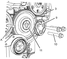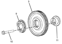 10.將Perkins1106A/C發(fā)動機(jī)惰齒輪組件(3)和輪轂(11)從前Perkins1106A/C發(fā)動機(jī)機(jī)殼體的凹槽上卸下。