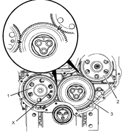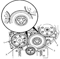 5.確保已標(biāo)記齒輪(1)、(2)和(3)以便顯示對準(zhǔn)位置。
