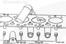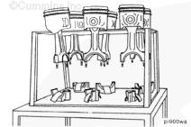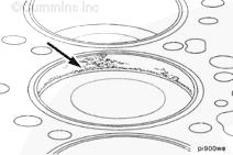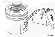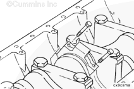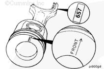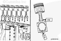 康明斯ISB5.9 G CM2180發(fā)動(dòng)機(jī)活塞和連桿總成 概述 TOC 與康明斯ISB5.9 G CM2180發(fā)動(dòng)機(jī)功率有關(guān)的問題有很多,包括機(jī)油消耗過大、冒煙、竄氣和性能不良,它們可能由活塞環(huán)與缸壁之間的密封不良引起。A 竄氣測(cè)量值有助于發(fā)現(xiàn)問題。參考第 14 節(jié)中的步驟 014-002。 連接康明斯ISB5.9 G CM2180發(fā)動(dòng)機(jī)活塞和連桿的活塞銷采用自由浮動(dòng)的中空活塞銷。已經(jīng)完成從活塞冷卻噴嘴通過滯留噴霧的方法潤(rùn)滑銷和軸頸。 康明斯ISB5.9 G CM2180發(fā)動(dòng)機(jī)連桿的活塞銷端帶有切削角度,以增加軸承受力面積。連桿端頭裝有青銅襯套。 準(zhǔn)備步驟 警告 為了減小人身傷害的可能性,應(yīng)避免皮膚直接接觸熱機(jī)油。 警告 冷卻液有毒。避免兒童與寵物接觸冷卻液。如果不再繼續(xù)使用,應(yīng)按照當(dāng)?shù)丨h(huán)保法規(guī)進(jìn)行處理。 排放機(jī)油。參考第 7 節(jié)中的步驟 007-025。 拆下油底殼和密封墊。參考第 7 節(jié)中的步驟 007-025。 排放冷卻液。參考第 8 節(jié)中的步驟 008-018。 拆下缸蓋。參考第 2 節(jié)中的步驟 002-004。 拆卸 TOC 根據(jù)康明斯ISB5.9 G CM2180發(fā)動(dòng)機(jī)氣缸位置標(biāo)記每個(gè)連桿蓋。 使用康明斯ISB5.9 G CM2180 發(fā)動(dòng)機(jī)盤車工具(零件號(hào) 3824591)旋轉(zhuǎn)曲軸,直到活塞位于積碳下方(可在活塞環(huán)行程區(qū)域的上方找到)。 注意 不要用砂布或砂紙去除缸孔上的積碳。來自這些材料的氧化鋁或硅微粒會(huì)嚴(yán)重?fù)p壞康明斯ISB5.9 G CM2180 發(fā)動(dòng)機(jī)。 用刮刀或鈍邊工具松動(dòng)積碳。不要讓刮刀損壞缸套。 注: 在清潔缸孔時(shí),執(zhí)行圓柱運(yùn)動(dòng),不是垂直運(yùn)動(dòng),確保不造成泄漏通道。 用 Scotch-Brite 清潔墊或等同物清除剩余的積碳。 拆下康明斯ISB5.9 G CM2180發(fā)動(dòng)機(jī)螺釘、連桿蓋和連桿軸承。參考第 1 節(jié)中的步驟 001-005。 將康明斯ISB5.9 G CM2180發(fā)動(dòng)機(jī)連桿和活塞總成推出缸孔。注意不得損壞連桿或軸承。 用雙手取出活塞和連桿總成。 注: 活塞和連桿總成必須安裝在與拆卸時(shí)相同的氣缸上。如果要繼續(xù)使用這些零件,這樣會(huì)使磨損的配合面正確配合。 使用標(biāo)簽標(biāo)記拆下的活塞和連桿總成所屬的缸號(hào)。 將康明斯ISB5.9 G CM2180發(fā)動(dòng)機(jī)連桿和活塞總成放入容器中以免損壞。 解體 TOC 使用康明斯ISB5.9 G CM2180發(fā)動(dòng)機(jī)活塞環(huán)擴(kuò)張器(零件號(hào) 3823137)拆卸活塞環(huán)。參考第 1 節(jié)中的步驟 001-047。 拆卸康明斯ISB5.9 G CM2180發(fā)動(dòng)機(jī)卡環(huán)。 拆下康明斯ISB5.9 G CM2180發(fā)動(dòng)機(jī)活塞銷。 注: 不需要加熱活塞。 組裝 TOC 確?;钊系那皹?biāo)志以及連桿和連桿蓋上的數(shù)字的方向如圖所示。 將康明斯ISB5.9 G CM2180發(fā)動(dòng)機(jī)卡環(huán)安裝到活塞前側(cè)的活塞銷槽中。 用清潔的燃?xì)饪得魉笽SB5.9 G CM2180 發(fā)動(dòng)機(jī)機(jī)油潤(rùn)滑活塞銷及銷孔。 安裝康明斯ISB5.9 G CM2180發(fā)動(dòng)機(jī)銷。 注: 安裝活塞銷時(shí)無(wú)需加熱活塞,但活塞必須在室溫或室溫以上。 安裝康明斯ISB5.9 G CM2180發(fā)動(dòng)機(jī)第二個(gè)活塞銷卡環(huán)。 安裝 TOC 將康明斯ISB5.9 G CM2180發(fā)動(dòng)機(jī)軸瓦裝入連桿和連桿蓋中。確保軸瓦上的定位舌位于連桿蓋和連桿的槽中。 用一薄層清潔的康明斯ISB5.9 G CM2180 發(fā)動(dòng)機(jī)機(jī)油潤(rùn)滑連桿軸承。 安裝康明斯ISB5.9 G CM2180發(fā)動(dòng)機(jī)活塞環(huán)。參考第 1 節(jié)中的步驟 001-047。 使用清潔的燃?xì)饪得魉笽SB5.9 G CM2180 發(fā)動(dòng)機(jī)機(jī)油潤(rùn)滑活塞環(huán)和活塞裙。 放置各個(gè)康明斯ISB5.9 G CM2180發(fā)動(dòng)機(jī)活塞環(huán),使每個(gè)活塞環(huán)開口相互成 120 度。 注意 如果使用帶式活塞環(huán)壓縮器,確保帶的內(nèi)側(cè)沒有掛在活塞環(huán)的缺口并折斷活塞環(huán)。 將康明斯ISB5.9 G CM2180發(fā)動(dòng)機(jī)活塞環(huán)壓縮器(零件號(hào) 3823290)安裝到活塞上。 康明斯ISB5.9 G CM2180發(fā)動(dòng)機(jī)壓縮活塞環(huán)。 使用清潔的燃?xì)饪得魉笽SB5.9 G CM2180 發(fā)動(dòng)機(jī)機(jī)油潤(rùn)滑缸孔。 使用康明斯ISB5.9 G CM2180 發(fā)動(dòng)機(jī)盤車工具(零件號(hào) 3824591),將要安裝的活塞連桿軸頸置于下止點(diǎn)。 注意在插入連桿時(shí)不要損壞缸壁。 將康明斯ISB5.9 G CM2180發(fā)動(dòng)機(jī)活塞和連桿總成裝入缸孔,活塞上的前標(biāo)記朝向缸體前部。 小心地將活塞推入缸孔,同時(shí)將連桿引導(dǎo)至曲軸軸頸處。 用清潔的康明斯ISB5.9 G CM2180 發(fā)動(dòng)機(jī)機(jī)油潤(rùn)滑螺紋和連桿螺釘頭的下部。 注: 印在連桿和連桿蓋間分型線上的編號(hào)必須匹配,并安裝在康明斯ISB5.9 G CM2180 發(fā)動(dòng)機(jī)機(jī)油冷卻器側(cè)。 將康明斯ISB5.9 G CM2180發(fā)動(dòng)機(jī)連桿蓋和螺釘安裝到連桿上。 交替擰緊 2 顆螺釘。 Torque Value: 30 n.m [22 ft-lb] 60 n.m [44 ft-lb] 順時(shí)針轉(zhuǎn)動(dòng) 60 度。 注: 不要測(cè)量連桿蓋與曲軸間的間隙。 用塞尺測(cè)量康明斯ISB5.9 G CM2180發(fā)動(dòng)機(jī)連桿與曲軸間的側(cè)隙。 曲軸必須能夠轉(zhuǎn)