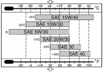 應(yīng)根據(jù)穩(wěn)定的外界空氣溫度按此圖表選擇粘度合適的潤滑油。