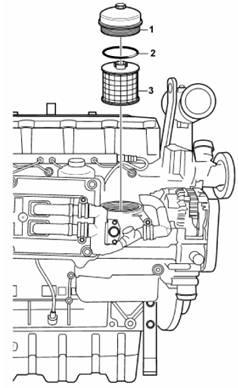6.安裝新的濾清器(3)和O 型環(huán)(2)。