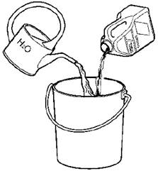 重要事項!加入系統(tǒng)中的冷卻液濃度必須正確是極為重要的。在加入系統(tǒng)前,應(yīng)先用單獨的清潔容器混合好,以確保溶液均勻混合。