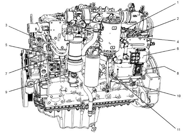 在一個典型的1206e-e66發(fā)動機左側(cè)的傳感器位置