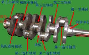 l 曲軸分為主軸頸、連桿軸頸、曲柄、曲軸前端、曲軸后端五部分。