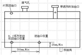 對于中型(B、C系列)發(fā)動機回油口必須低于油面,而PT系統(tǒng)的回油口必須高于油面。