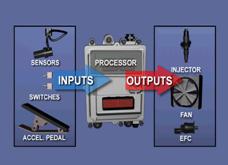 輸入發(fā)動機上的傳感器 溫度: 冷卻液、進氣、燃油 壓力:進氣、機油、燃油、大氣壓 轉(zhuǎn)速:曲軸、凸輪軸