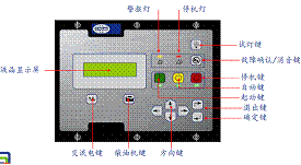 (1)液晶顯示屏—液晶顯示屏可顯示所有的從傳感器讀取至事件日志的發(fā)電機組信息,詳細請參照上圖所示。