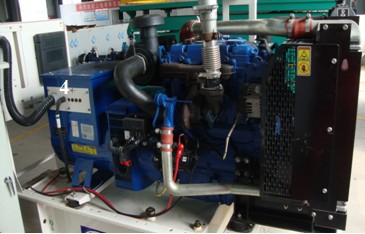 在柴油機汽缸內(nèi),經(jīng)過空氣濾清器過濾后的潔凈空氣與噴油嘴噴射出的高壓霧化柴油充分混合,在活塞上行的擠壓下,體積縮小,溫度迅速升高,達到柴油的燃點。柴油被點燃,混合氣體劇烈燃燒,體積迅速膨脹,推動活塞下行,稱為‘做功’。各汽缸按一定順序依次做功,作用在活塞上的推力經(jīng)過連桿變成了推動曲軸轉(zhuǎn)動的力量,從而帶動曲軸旋轉(zhuǎn)。將無刷同步交流發(fā)電機與柴油機曲軸同軸安裝,就可以利用柴油機的旋轉(zhuǎn)帶動發(fā)電機的轉(zhuǎn)子,利用‘電磁感應(yīng)’原理,發(fā)電機就會輸出感應(yīng)電動勢,經(jīng)閉合的負(fù)載回路就能產(chǎn)生電流。發(fā)電機主要由磁性材料制造多個南北極交替排列的永磁鐵(稱為轉(zhuǎn)子)和硅鑄鐵制造并繞有多組串聯(lián)線圈的電樞線圈(稱為定子)組成。